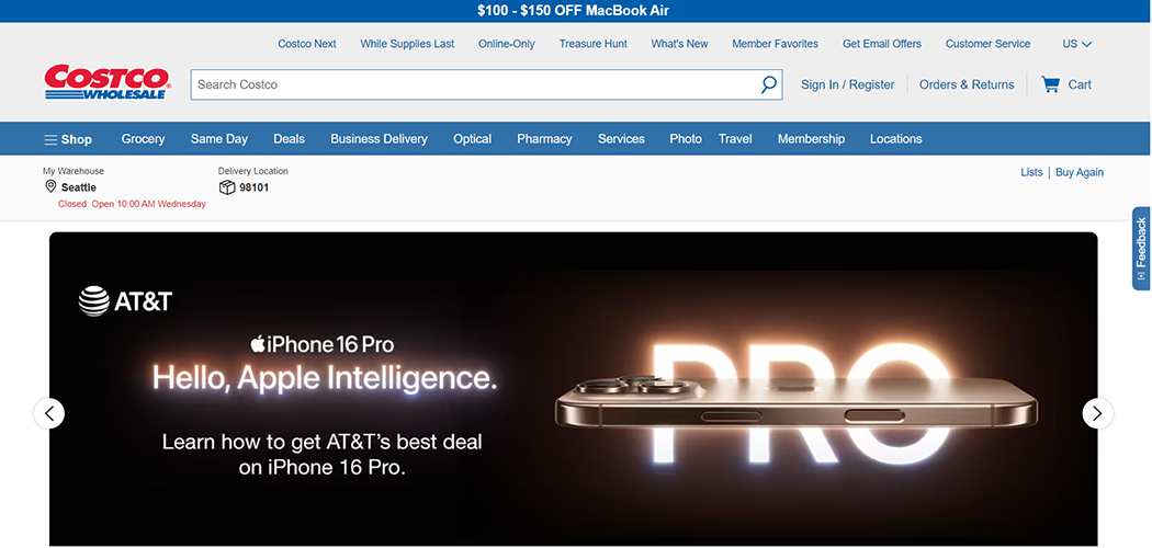 Costco is a membership-based warehouse club offering quality products in bulk. Their online store complements their in-store experience, providing exclusive deals on groceries, electronics, and household items, often with substantial savings for members.